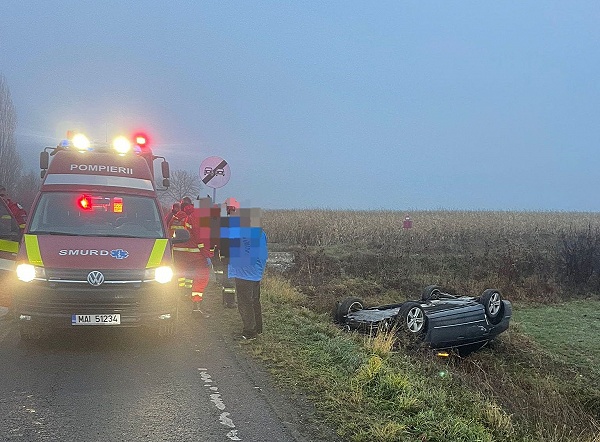 În această dimineață, 11 noiembrie, în jurul orei 07.20, dispeceratul ISU Satu Mare a fost sesizat despre un accident rutier la ieșirea din localitatea Vama, spre Orașu Nou. Un autoturism implicat a fost găsit răsturnat pe marginea drumului.